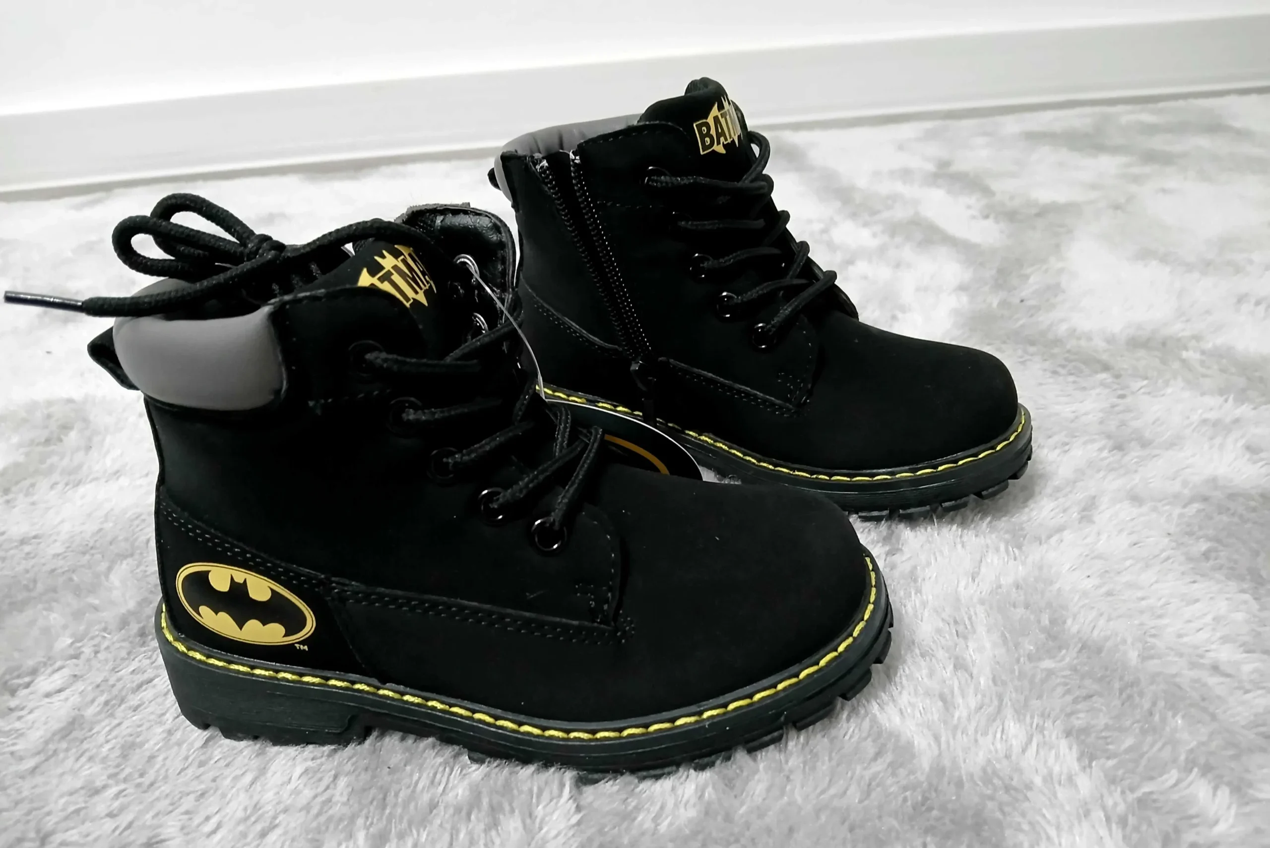 Bereit für große Abenteuer? Bei Friboo gibt es jetzt ein echtes Highlight für kleine Superhelden: Eine stylische Schnürstiefelette in coolem Schwarz mit Batman-Design – ideal für jedes Wetter und jeden Auftritt. Unisex tragbar, bequem und mit exklusiven Vorteilen erhältlich – nur für kurze Zeit in unserer Aktionsauswahl!